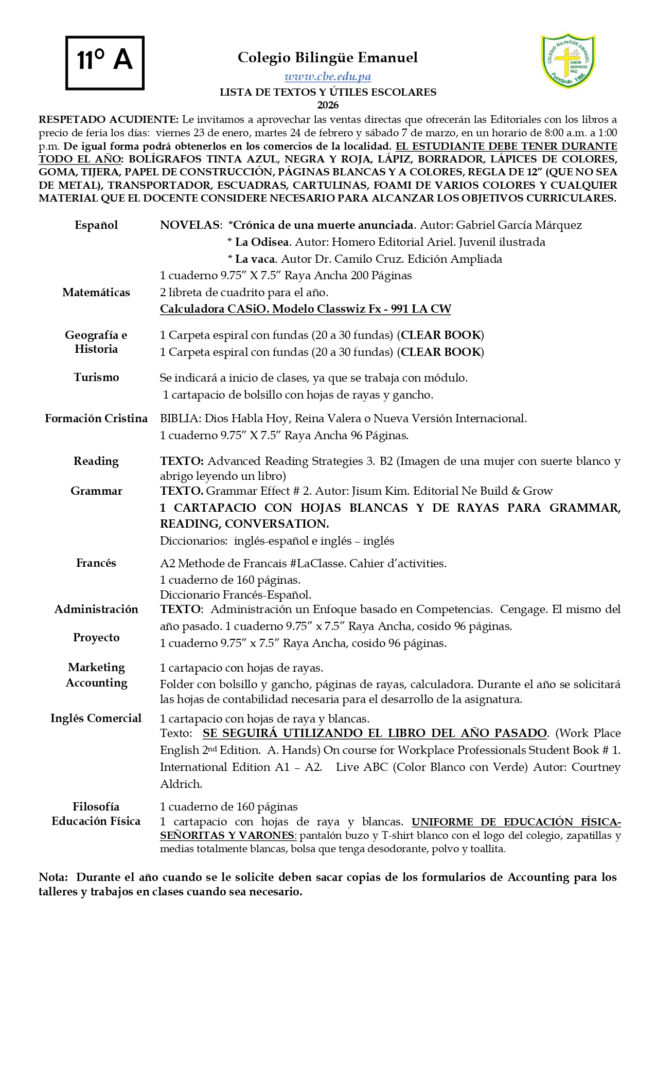 Costos de Colegiatura